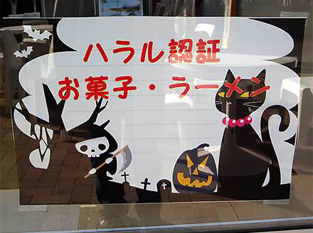 奥のコムスクエア一階のコンビニではハラル認証のお菓子やラーメンを売っていました。