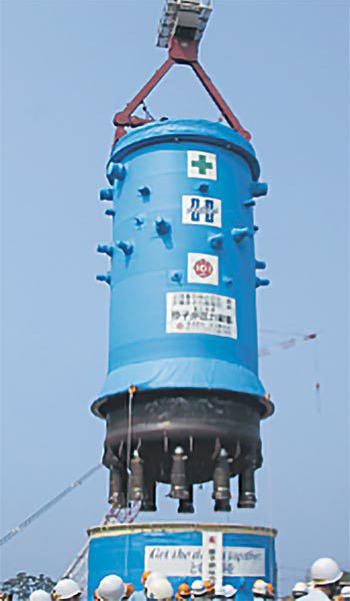 私は、入社当初、日本原子力研究開発機構(旧 日本原子力研究所)納めの高温工学試験研究炉(HTTR)の原子炉圧力容器(RPV)関連の設計に携わった後、沸騰水型原子力発電所(BWR)へ納入するRPVの設計に従事しました。これまで経験したプラントは龍門1号機(GE経由台湾電力殿)、志賀2号機(北陸電力殿)、島根3号機(中国電力殿)、大間1号機(電源開発殿)です。弊社は日立グループで扱っています原子力プラントのRPVを担当しており、これまで18機製作しています(RPVの写真参照願います)。