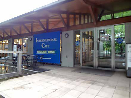更に中央通りを進むと左側にインターナショナルカフェが見えて来ました。青い表示の下にはEnglish Zoneの文字があります。ここは世界と交流する場所。様々な国から来た留学生とのコミュニケーションを図れます。