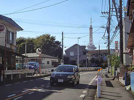 緩いカーブを曲がると見えてきたのが1号館のFM送信塔。ここを上り詰めると湘南キャンパスに到着します。