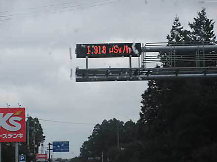 路上に張り出した放射線量を示す表示には1.918μSv/hの表示が出ている。