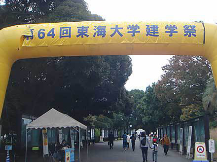 右手一帯には学生時代にお昼を食べたお店が並んでいます。真田幼稚園側には「第64回東海大学建学祭」のゲートがあります。ゲートの先には警備の保安テントや案内テントがあり、今年のパンフレットを配布していました。