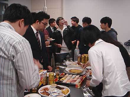 HOME | 探訪レポート | report2018-11-03 | 第64回建学祭レポート その6(report2018-11-03) あちこちで旧交を温め昔話に花が咲いていました。隅のほうでは企業説明会で時間が足りずに聞き損なった情報を得ようと企業と学生の個別相談も行われていました。 懇親会① 懇親会② 最後は吉田先生のエールでお開きです。この後は総合運動場に上がる花火見学でした。帰り道には1号館にBuild UPのイルミネーションが輝いていました。 吉田先生エール 花火 前のページ | 1 | 2 | 3 | 4 | 5 | 6 |