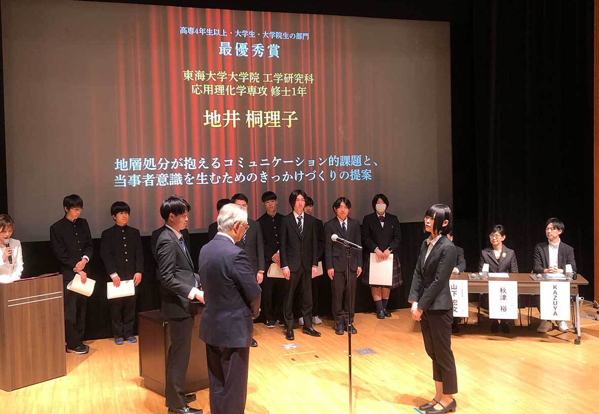 NUMO主催の学生による提言コンテストで大学院生の地井桐理子さん(若杉教授研究室)が最優秀賞を受賞しました