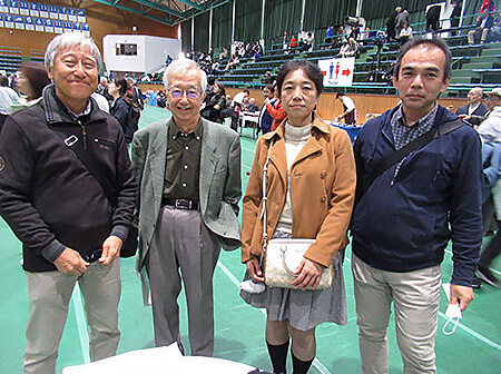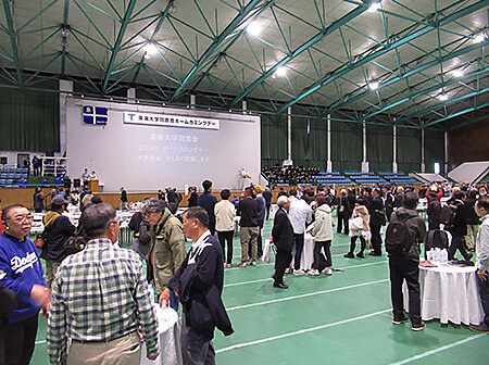 体育館にてホームカミングデイが久しぶりに開催されました。ここの会場で鶴岡名誉教授とお会いしました。また、偶然にも我々が会食していたテーブルに大先輩の中村達男氏(1965年卒)がいらっしゃいました、成田昇先生、渡邊道彦氏(元千代田テクノル)、若松八郎氏(元千代田テクノル)、加須屋正昭氏(元重松製作所)と同期とのことです。
